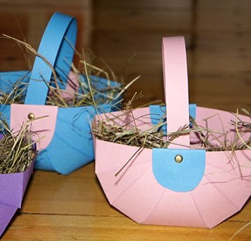 Hast Du es besonders eilig, kannst Du die Körbchen auch nur mit schönem Tonpapier basteln. Aus buntem etwas stärkerem Papier entstehen lustige Kombinationen.